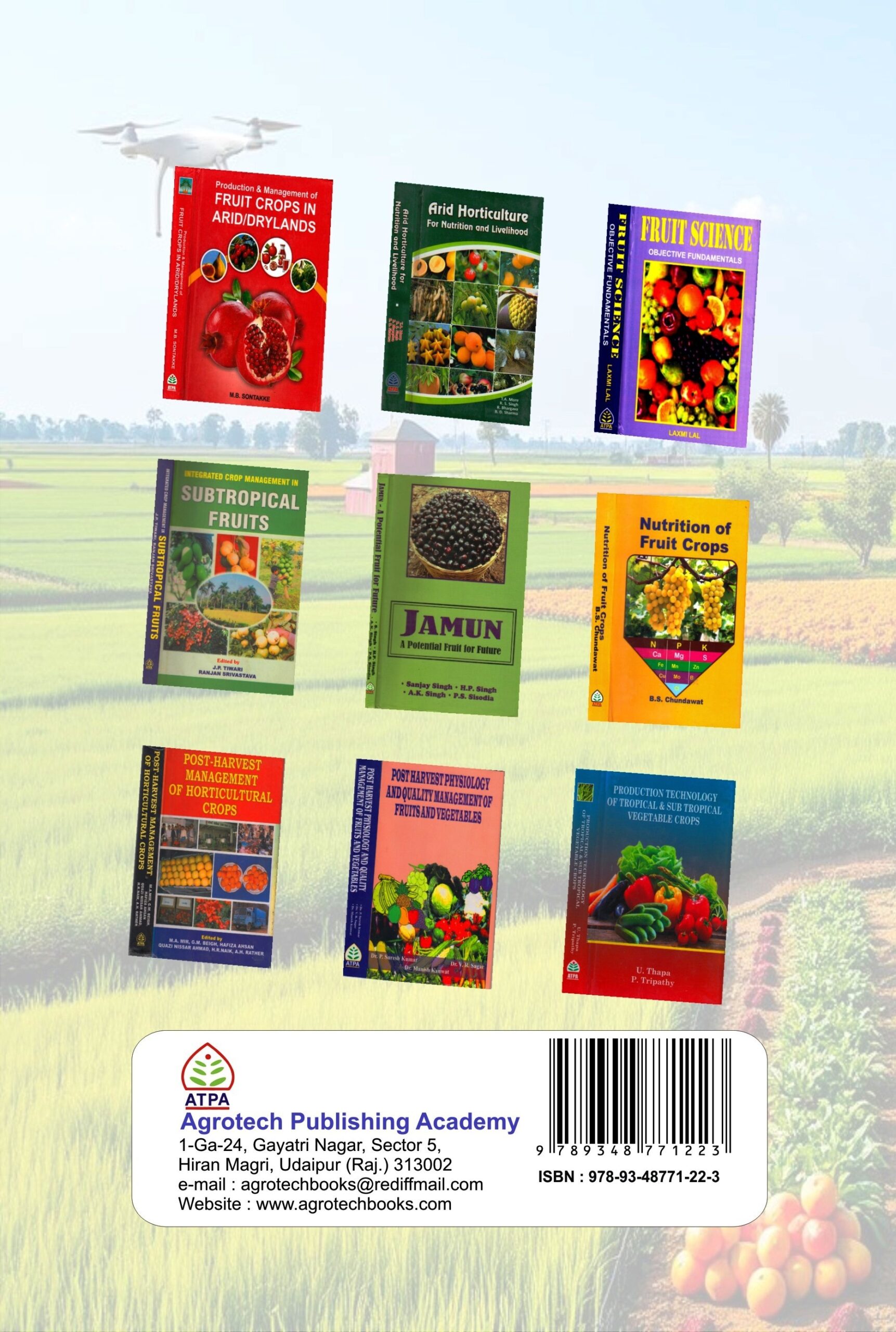 This book, comprising of different chapters contributed by well known experts in respective fields, covers relevant topics in crop management like quality planting material production, nursery management, high density orcharding, PGRs., canopy management, crop regulation, INM, IPM, Biodynamic and many more. In-formation on WTO and IPR will be of much relevance to many of the ex-porters and breeders. The book is an outcome of ICAR sponsored winter school on integrated crop management in subtropical fruits. It will be very useful for UG students all SAUs  and agricultural colleges all over India as it incorporate information required in this course recommended by the 6th deans’ committee of ICAR.