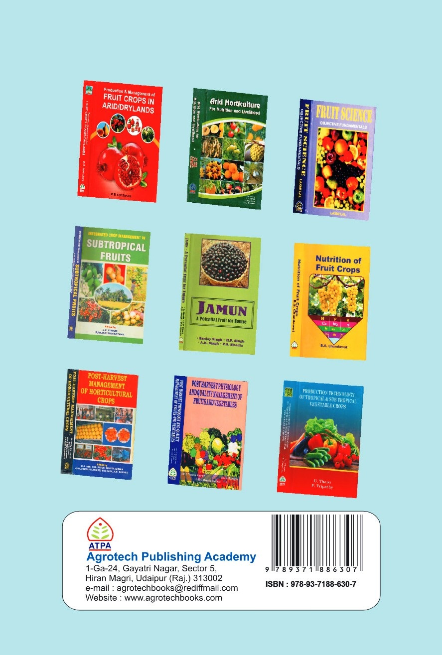 It explores postharvest treatments, such as chemical treatments and irradiation, to enhance shelf life and safety including processing and preservation, canning, tomato products, Fermented and non-fermented beverages, drying and dehydration, value addition of fruits and vegetables. Sustainable practices are emphasized, promoting environmentally friendly and economically viable methods, improved packing storage and transportation of fruits. The book concludes with emerging technologies and future trends, such as automation and smart packaging, offering a forward-looking perspective on postharvest management. This resource is invaluable for students, researchers, practitioners, and policymakers in the field. The book covers the entire syllabus recommended by the 6th Deans’ Committee of ICAR.